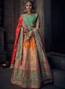 ତେବେ ଆସନ୍ତୁ କିଛି କମଳା ରଙ୍ଗର ଲେହେଙ୍ଗା ଉପରେ ନର ପକାଇବା, ଯାହା ବିବାହ ଆଦି ପାର୍ଟି ପଙ୍କସନରେ ପିନ୍ଧିପାରିବା।