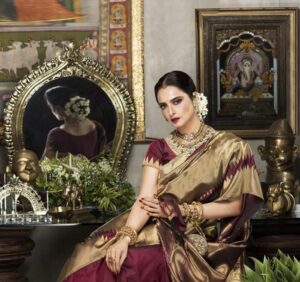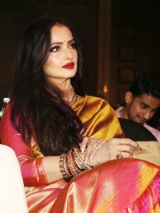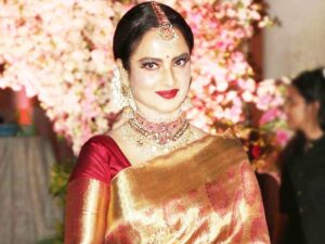 ଭାରୀ ଅଳଙ୍କାର, ପୋଟଳି ବ୍ୟାଗ୍, ଗାଢ ଲିପଷ୍ଟିକ୍… ଏଭରଗ୍ରୀନ୍ ବିୟୁଟି ରେଖା