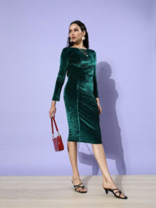 ଭେଲଭେଟ ଡ୍ରେସ୍ ରେ ଆପଣ ପାଶ୍ଚାତ୍ୟ ଲୁକ୍ ମଧ୍ୟ ଦେଇପାରିବେ। ସବୁଜ ରଙ୍ଗର ୱେଷ୍ଟର୍ଣ୍ଣ ଡ୍ରେସ୍ ଏବଂ କର୍ଲି ହେୟାର ଲୁକ୍ ଶୀତଦିନିଆ ବିବାହରେ ଆପଣ ଆହୁରି ଗର୍ଜିୟସ୍ ଲାଗିବେ।