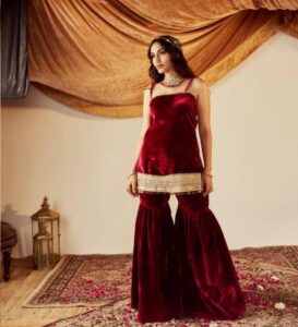 ଶୀତଦିନିଆ ବିବାହ ପାଇଁ ଆପଣ ଭେଲଭେଟ୍ ର ଶାରାରା ସୁଟ୍ ମଧ୍ୟ ବାଛିପାରିବେ | ଏହି ରାଜକୀୟ ଲୁକ୍ରେ ପାର୍ଟିରେ ଆପଣ ନିଆରା ଲାଗିବେ।